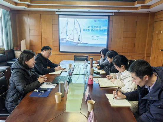 2026年1月14日下午,《淮阴工学院学报》编辑部邀请江苏海洋大学学术期刊社社长于雪梅来校作学报办刊专题报告。报告会由编辑部主任刘化喜主持,编辑部全体人员参加。